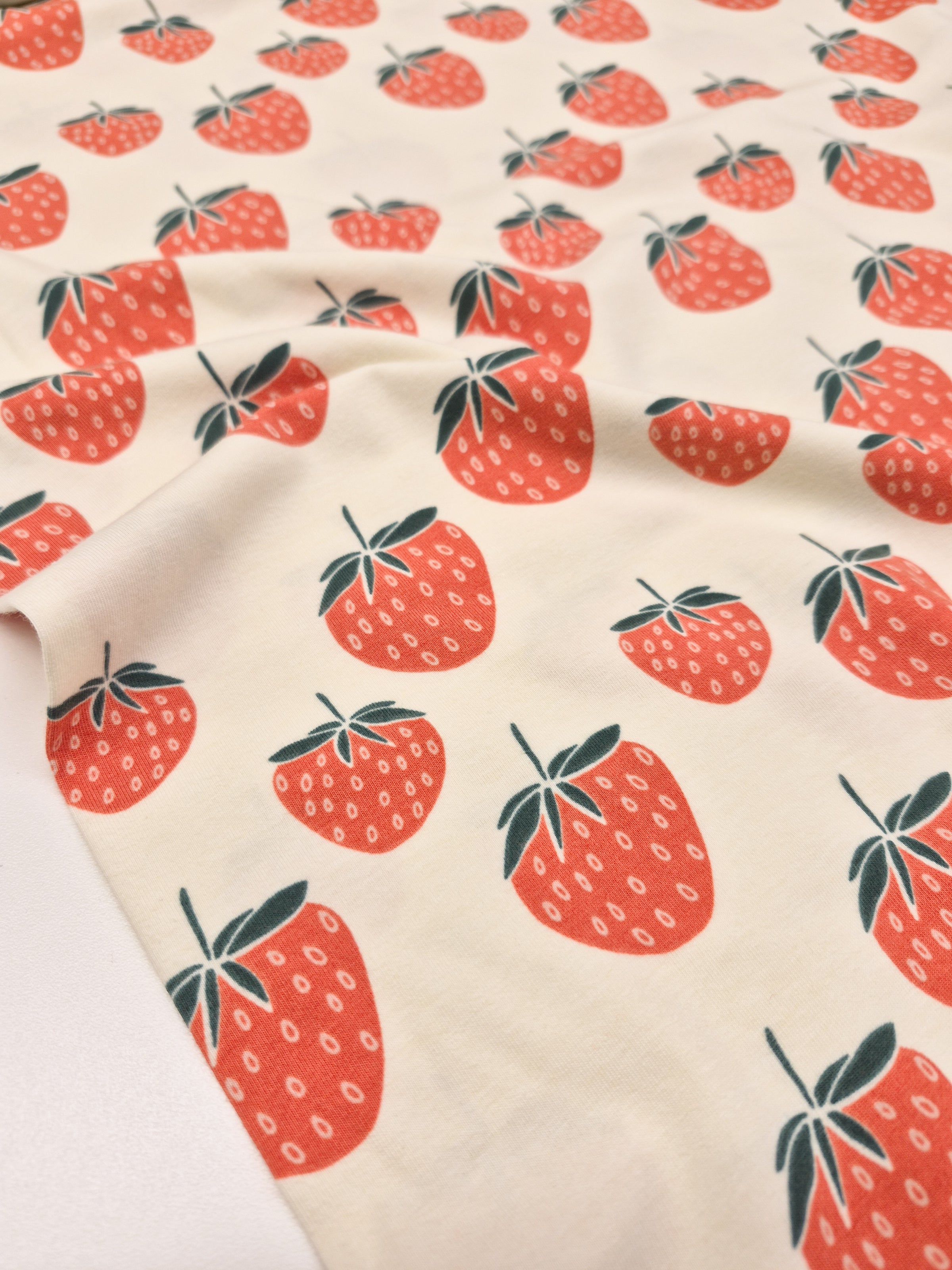 Organic Cotton Jersey Knit: Strawberries in Creme
